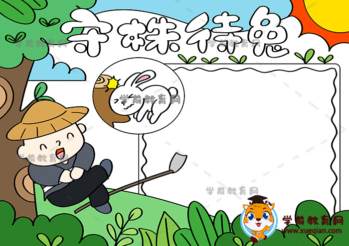 老师说了让同学们画一幅关于守株待兔的手抄报,这样的手抄报其实画起来很简单的,先要知道这个故事讲的是什么,然后根据故事中的其中一个场景画出来,在空白的地方用来写文字,不知道怎么画的看一下模板教程,非常小学生适合临摹哦。