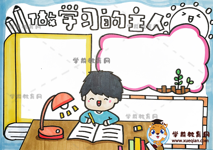 学习是持之以恒的一件事,需要大家有自律性,在学习的时候就认认真真、全身心投入的学习,玩的时候好好玩,但是学的时候就不要开小差。小编分享了做学习的主人手抄报模板,感兴趣的同学收藏下来画一画吧。