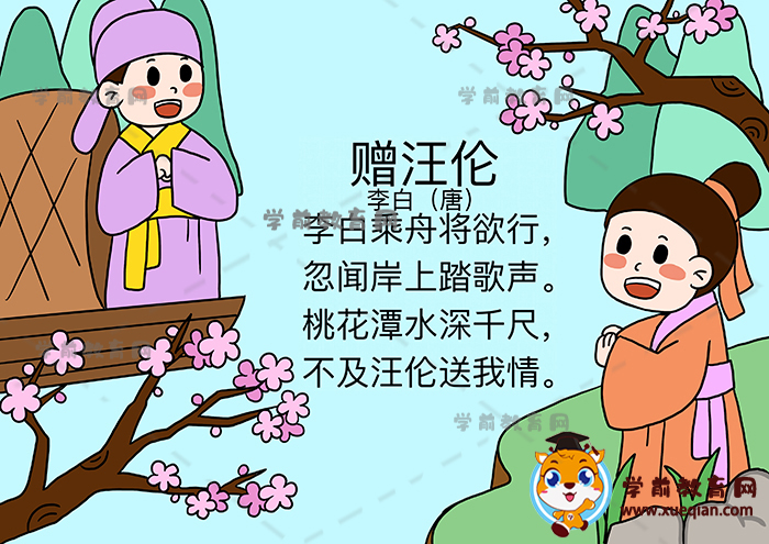 赠汪伦诗配画怎么画简单又好看,古诗赠汪伦诗配画步骤模板图片