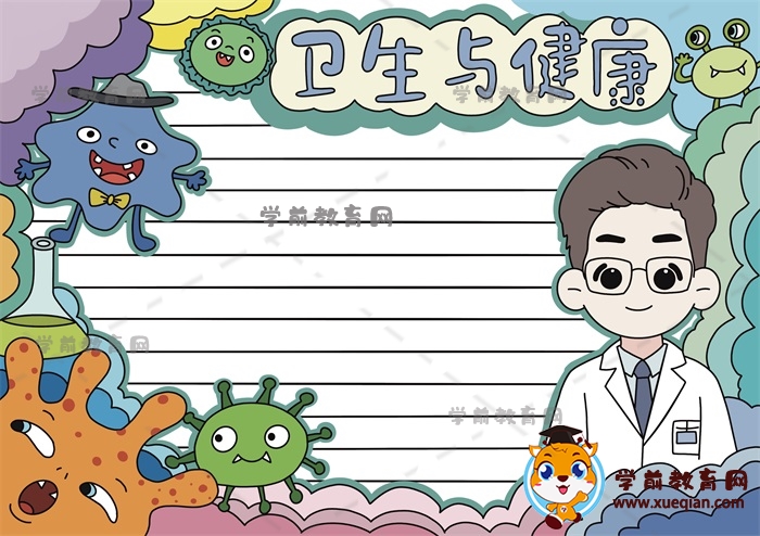 当一幅简单的卫生与健康手抄报画完之后,接下来大家不要忘记可以在手抄报的格子线上写上内容素材,小编在这里整理了一些和主题相关的资料内容,不知道写什么可以参考下列相关的文字,选择合适的资料誊抄在手抄报的格子线上。